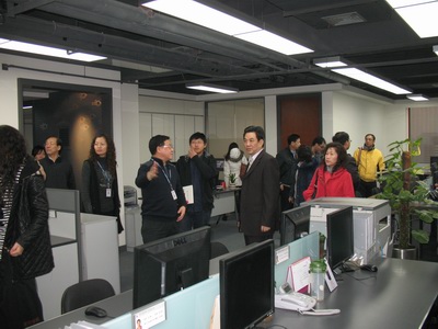 總經(jīng)理王躍先生帶領(lǐng)訪問團(tuán)成員參觀了常宏裝飾寫字樓。
