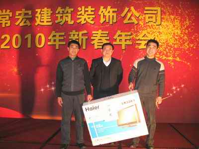 宴會(huì)開(kāi)始,員工舉杯同慶, 滿(mǎn)懷豪情,相互祝愿。員工及家屬朋友多才多藝,熱情地參加演出,紛紛獻(xiàn)上精彩節(jié)目。晚會(huì)的重頭戲“抽獎(jiǎng)”環(huán)節(jié)更是扣人心弦,常宏裝飾承德辦事處施工主管張志英喜得本場(chǎng)晚會(huì)的大獎(jiǎng),將晚會(huì)現(xiàn)場(chǎng)帶入了又一個(gè)高潮……