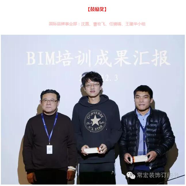 2016年12月3日,常宏BIM培訓成果匯報在公司會議室順利舉行。常宏董事總經理王躍、工程技術研發(fā)部總監(jiān)張偉及各相關部門設計、施工、計劃人員共三十余人參會。會議特別邀請了國際品牌事業(yè)部總經理張全輝、計劃部總監(jiān)武亞麗、綜合設計部副總經理吳歆威、IT事業(yè)部設計經理朱曉春擔任本次成果匯報的評委;工程技術研發(fā)部總監(jiān)張偉主持會議。