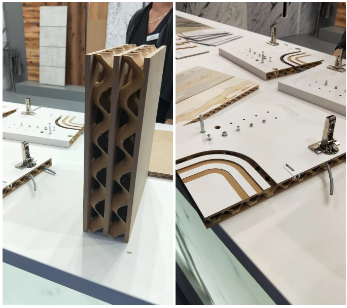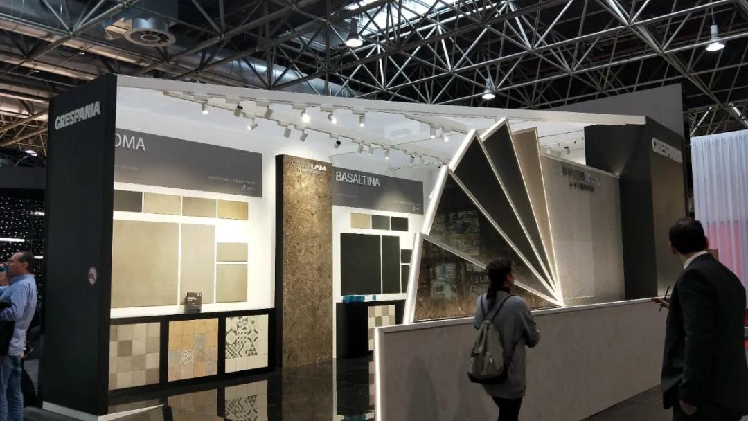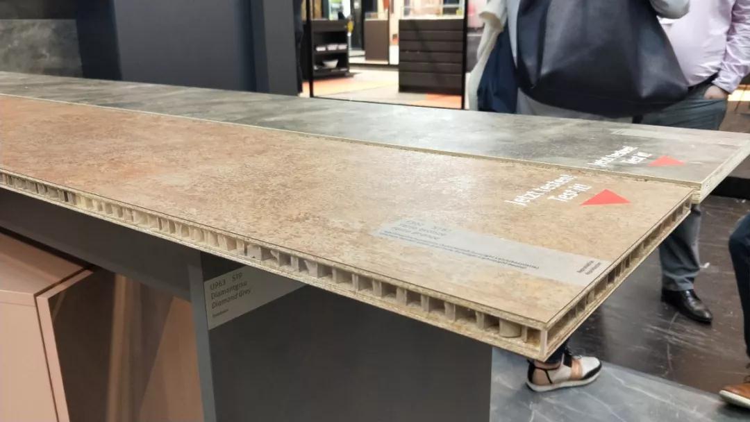 材 料 是科學(xué)技術(shù)發(fā)展的結(jié)果,同時材料的應(yīng)用也會帶來新技術(shù)的變革。本次展會的材料展區(qū)整體呈現(xiàn)著輕量化、復(fù)合化、高仿真的特點(diǎn)。這些特點(diǎn)主要體現(xiàn)在各類型高仿真的陶瓷薄板(仿石紋理、仿木紋理)、仿鏡面薄膜、殼體結(jié)構(gòu)復(fù)合板、仿真石材等。