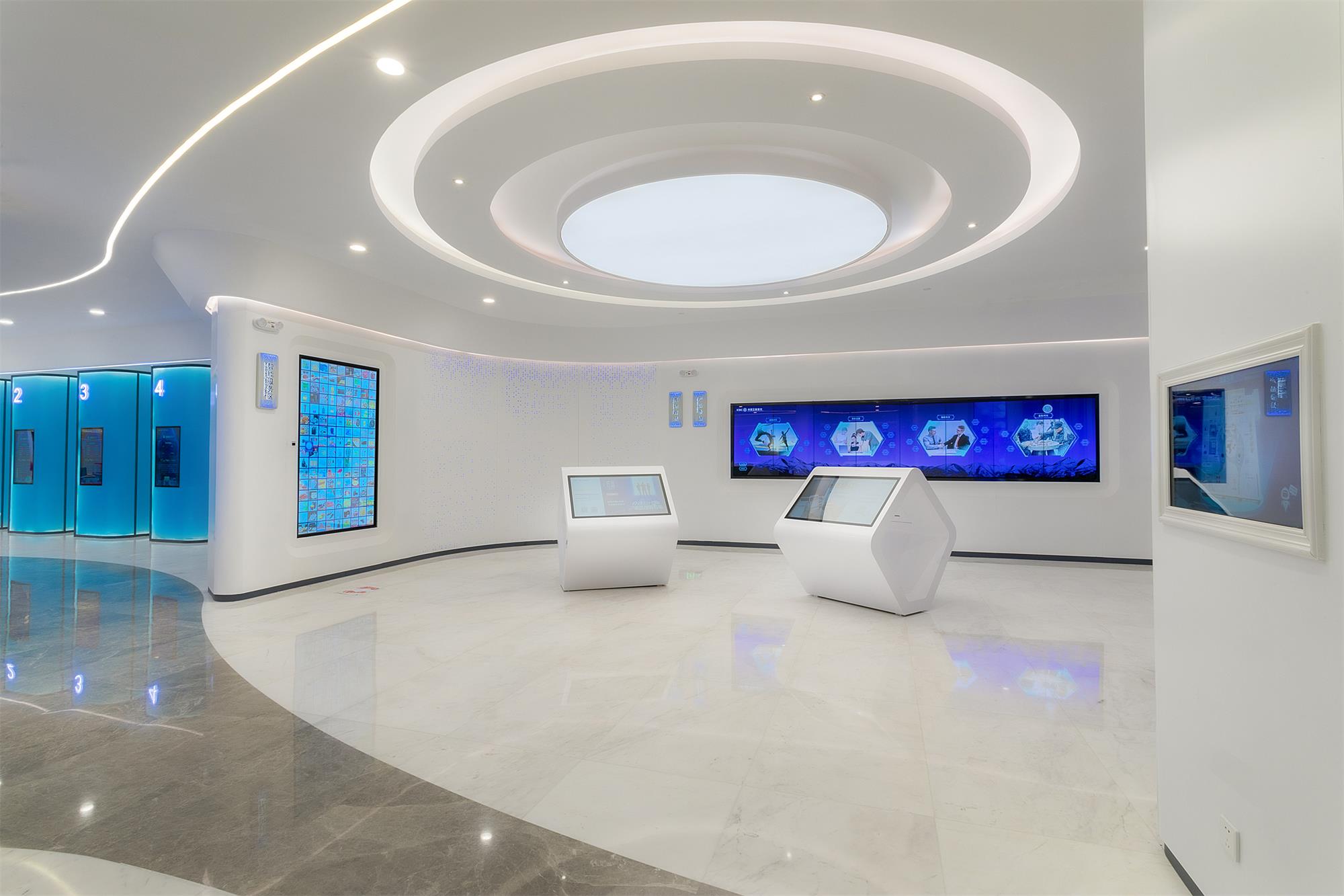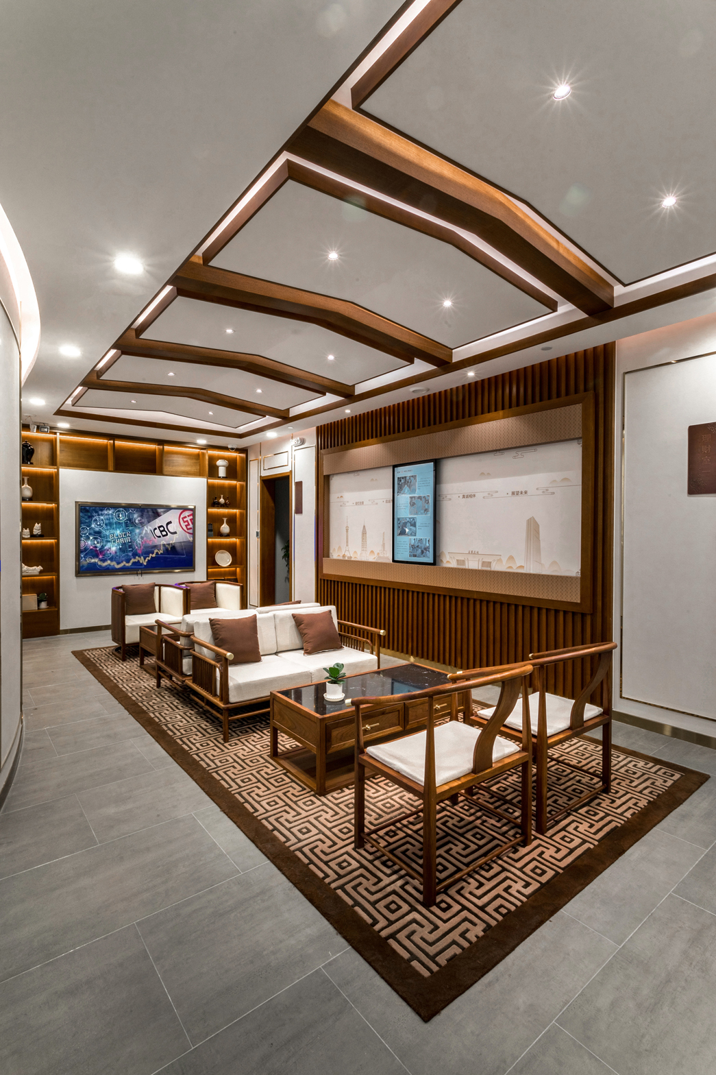 廳堂內(nèi)明亮的光線,流動(dòng)的波紋和多變的色彩,傳遞著穿越時(shí)空的設(shè)計(jì)語(yǔ)言,寓意時(shí)光的流逝、演變和發(fā)展;燈光和光帶如陽(yáng)光一般從建筑的外立面延伸到室內(nèi)空間,與設(shè)計(jì)主題相呼應(yīng);智能區(qū)屏幕上疾馳而過(guò)的復(fù)興號(hào),講述著石家莊——火車?yán)瓉?lái)的城市的發(fā)展故事。冀州古鼎、定州瓷器、蔚縣剪紙等擺件及飾品,描述著“京畿福地,大美燕趙”的宏偉畫卷。