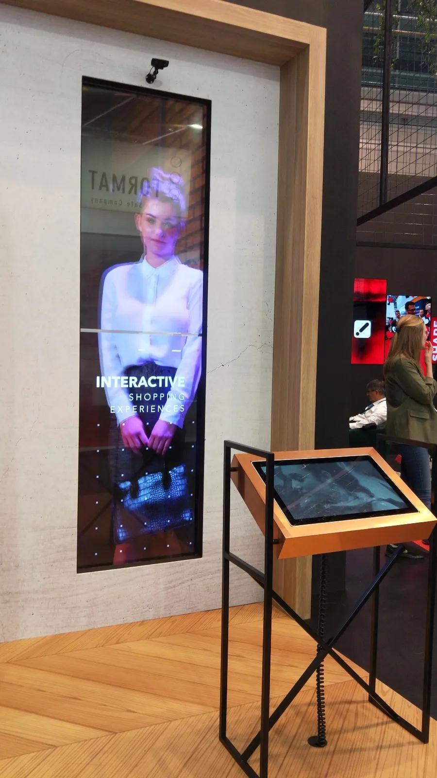 下面是荷蘭的一家公司整合的零售店智能產(chǎn)品,雖然在技術(shù)層面上不比國(guó)內(nèi)先進(jìn)多少,但是內(nèi)容設(shè)計(jì)上還是我們值得借鑒的。前面的一個(gè)屏幕供顧客選擇衣服并提供各種搭配,大屏幕上同時(shí)出現(xiàn)你做出的選擇和模特穿著你所選衣服的靚麗外表。當(dāng)您還在欣賞自己選擇的衣服是否合適時(shí),會(huì)出現(xiàn)一個(gè)跟模特一樣的真人。也許這就是西方特有的幽默吧。