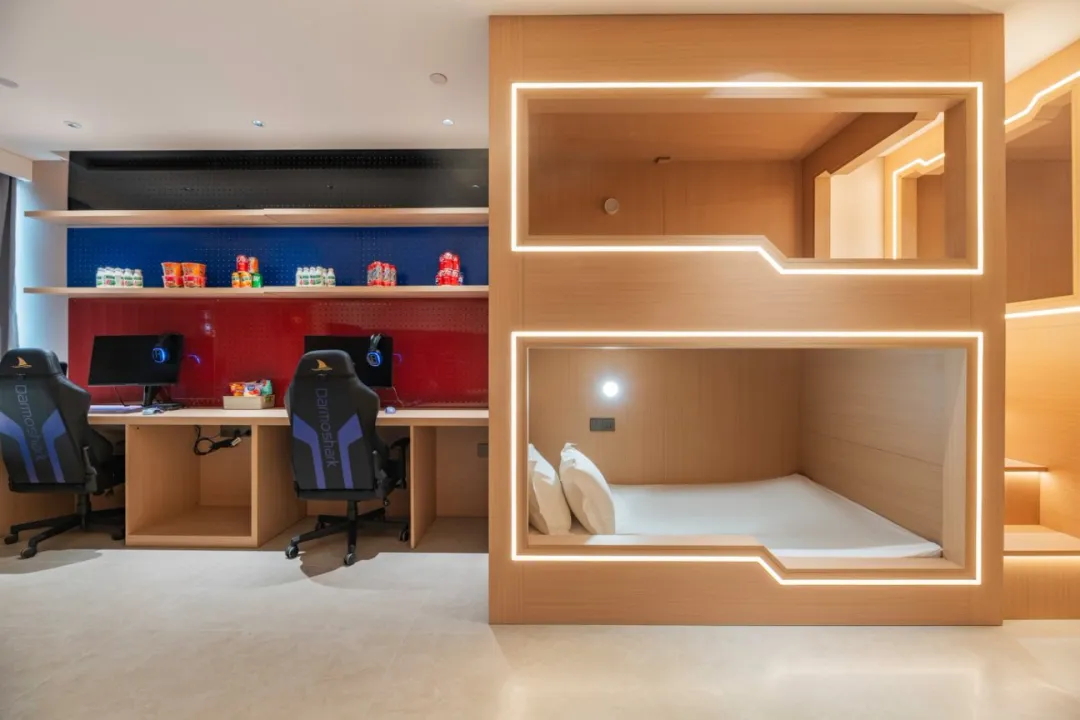 主材:巖板、淺木色飾面板、仿壁布快裝墻板、不銹鋼等