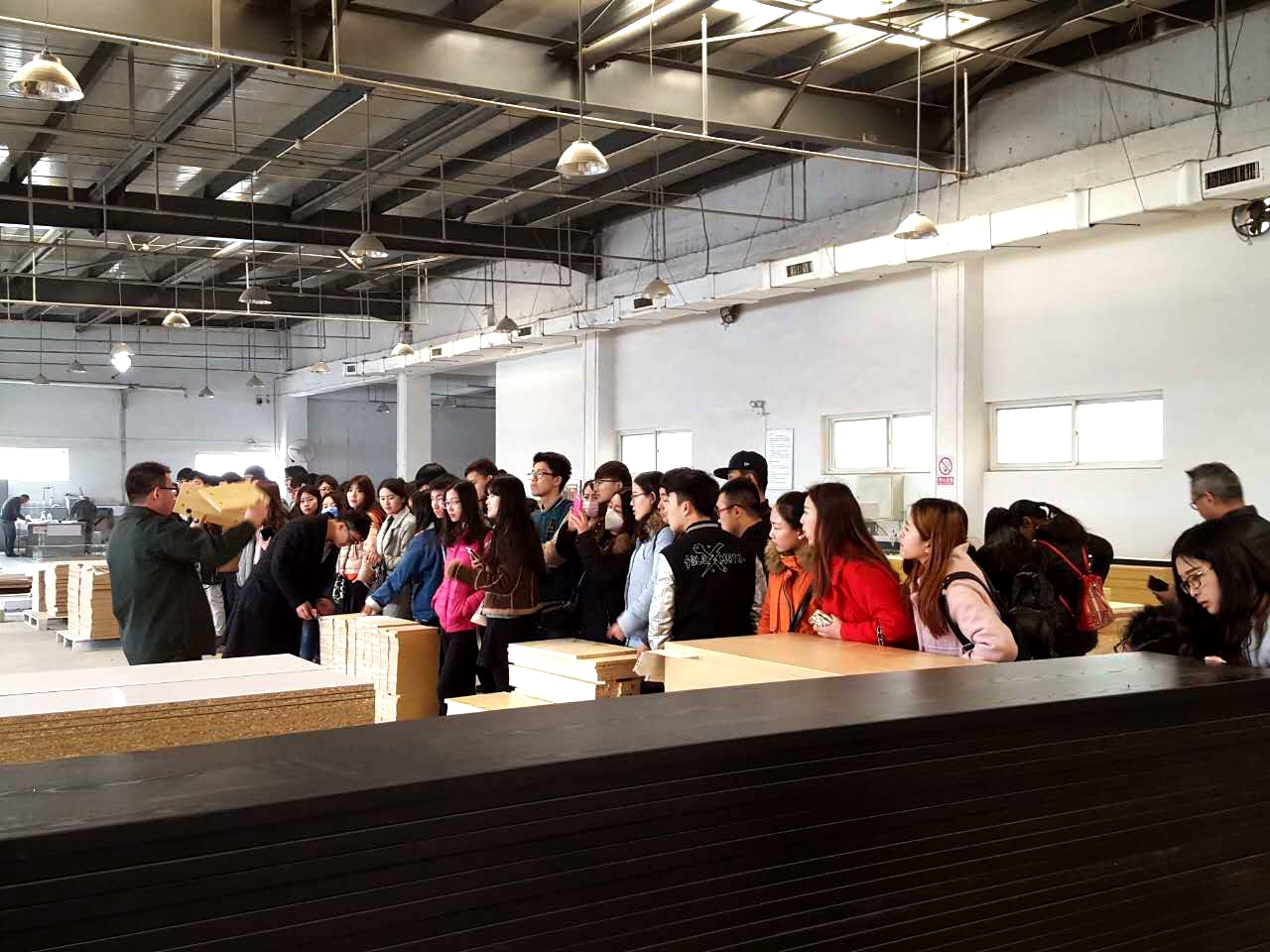 2016年3月8日上午,由河北師范大學美術(shù)與設(shè)計學院 車曉光等四位老師帶領(lǐng)的產(chǎn)品設(shè)計專業(yè)共60余名師生到常宏裝飾商業(yè)家具生產(chǎn)基地開展了教學與實踐相結(jié)合的參觀學習活動。