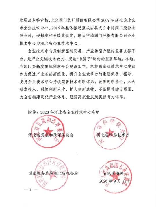 河北省發(fā)展和改革委員會(huì)、河北省科學(xué)技術(shù)廳、國(guó)家稅務(wù)總局河北省稅務(wù)局、石家莊海關(guān)四部門發(fā)布2020年河北省企業(yè)技術(shù)中心認(rèn)定名單的通知,常宏被認(rèn)定為河北省企業(yè)技術(shù)中心。
