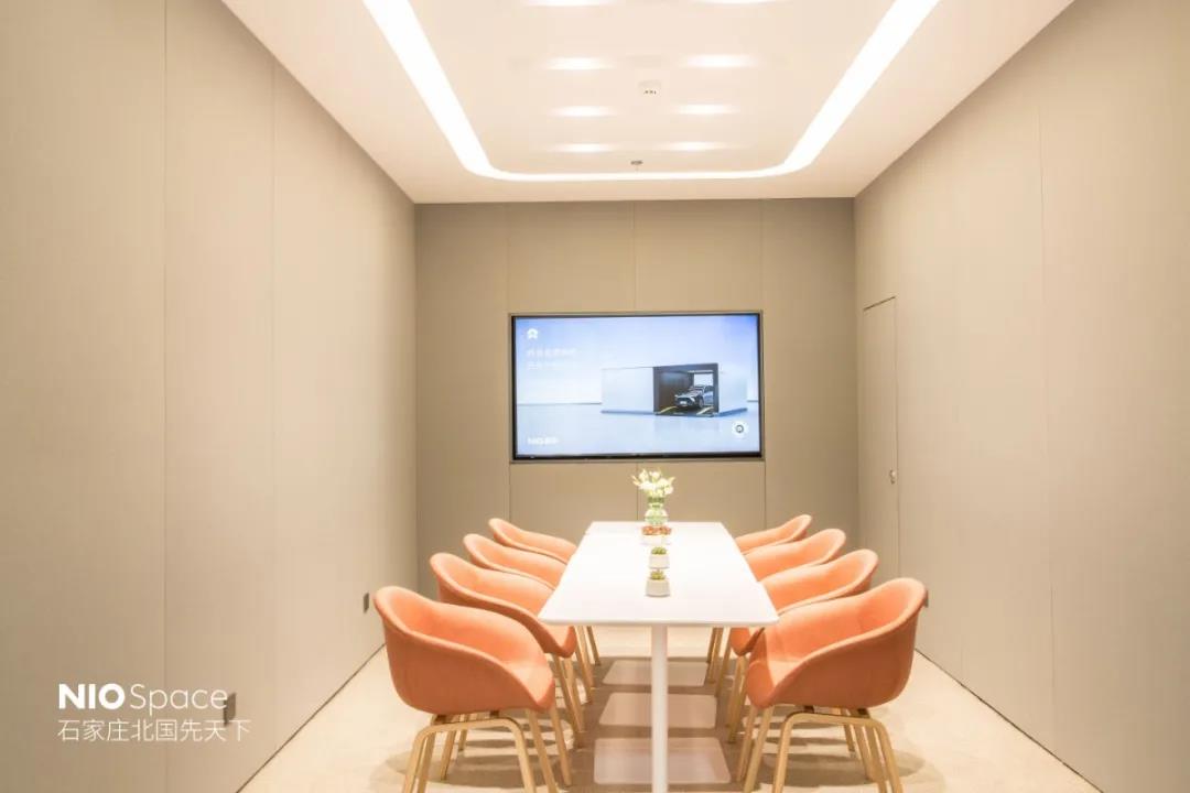 嵌入式的收納家具,使整個(gè)空間輕盈不負(fù)擔(dān);小小的一段拉簾,將展廳和會議室(平時(shí)可做辦公室)分開,加上灰色地毯、灰色硬包、灰色拉簾等搭配,溫馨的空間布局、時(shí)尚的NIO Life陳列,讓這個(gè)空間有了愉悅的體驗(yàn),將整個(gè)空間構(gòu)建成一個(gè)家的感覺。