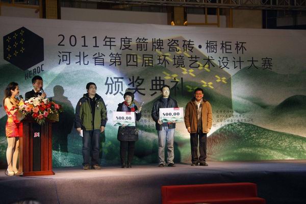 2011年12月27日下午,由中國建筑學會室內(nèi)設計分會第23專業(yè)委員會、河北省建筑裝飾學會、河北省工程勘察咨詢協(xié)會、石家莊市工程勘察咨詢業(yè)協(xié)會和石家莊建筑藝術沙龍主辦、箭牌瓷磚·櫥柜冠名、德利·名家壁紙布藝協(xié)辦、石家莊綠色家居有限公司承辦箭牌瓷磚·櫥柜杯河北省第四屆環(huán)境藝術設計大賽頒獎盛典在東明家具東二環(huán)店盛大開幕,河北省住房與城鄉(xiāng)建設廳總工程師馮長鎖、石家莊市投資促進局局長馬千里、河北省住房與城鄉(xiāng)建設廳建筑市場監(jiān)管處調(diào)研員蘭政、河北省住房與城鄉(xiāng)建設廳、河北省建設工程質(zhì)安處調(diào)研員朱忠?guī)?、石家莊市建設局總工程師王文章、石家莊市建設局設計處處長付相龍、河北省工程勘察咨詢協(xié)會會長劉寶才、河北省建筑裝飾學會常務副會長兼秘書長鄭榮科、河北省建筑裝飾學會總工程師溫德明、石家莊市勘察設計咨詢業(yè)協(xié)會會長陳式謙、石家莊市建筑裝飾協(xié)會會長朱紹榮、、中國建筑學會室內(nèi)設計分會第二十三專業(yè)委員會常務副主任/石家莊常宏建筑裝飾工程有限公司總經(jīng)理王躍等領導出席了此次大賽的頒獎典禮,還有來自省內(nèi)各建筑設計院、大專院校領導、裝飾公司、設計公司的領導及設計師等300余人云集一堂,共同見證大賽頒獎盛況,常宏建筑裝飾工程有限公司、大石代設計咨詢有限公司及孫一鳴高端空間設計服務機構為大賽的頒獎典禮帶來了精彩的節(jié)目,使頒獎現(xiàn)場精彩紛呈。