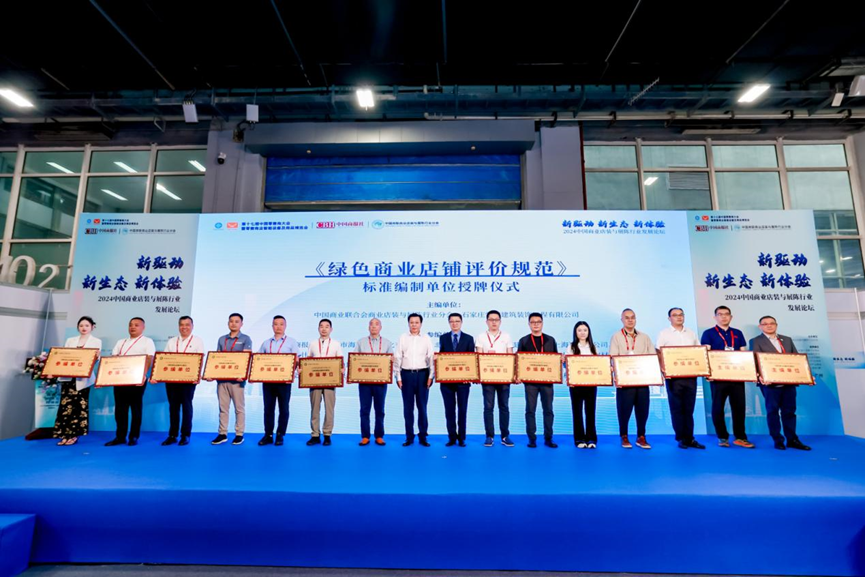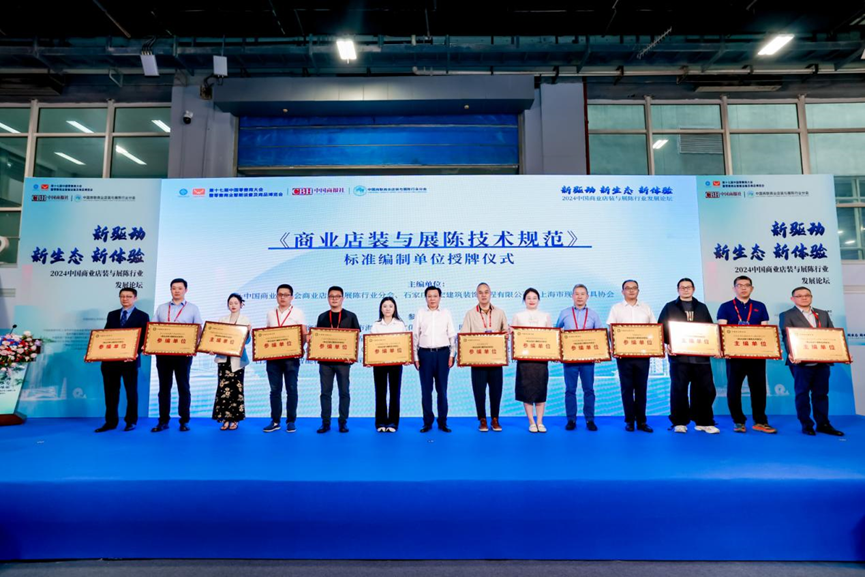 中國商業(yè)聯(lián)合會執(zhí)行會長王民對參與中國商業(yè)聯(lián)合會團體標(biāo)準(zhǔn)《商業(yè)店裝與展陳技術(shù)規(guī)范》編制的單位進行授牌
