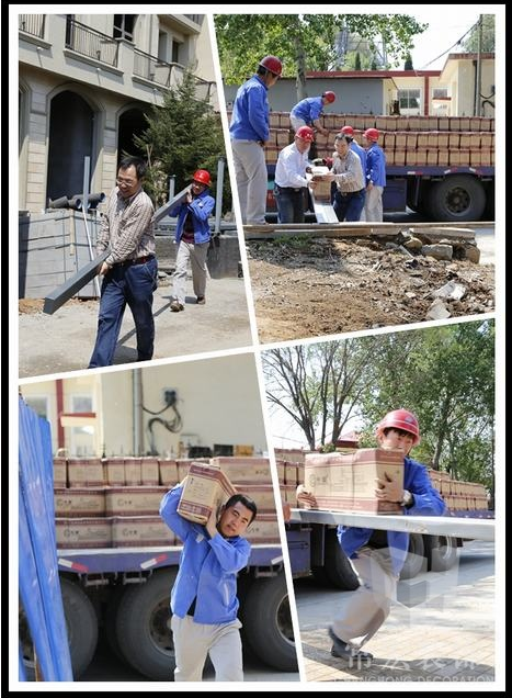 地面鋪裝的磚到現(xiàn)場(chǎng),一箱80多斤,一共700多件。裝修工們二話(huà)不說(shuō),甩開(kāi)膀子全部行動(dòng),熱火朝天的搬了起來(lái)!