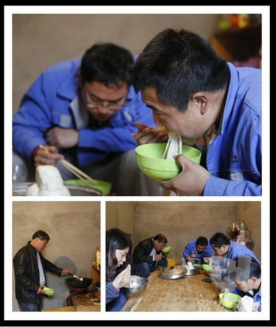 勞累了一上午,工人們終于可以休息休息吃個(gè)熱乎乎的中午飯了。因?yàn)樵趧e墅區(qū)又沒(méi)有到北戴河的旺季所以周?chē)鷽](méi)有什么小餐館或外賣(mài),大家只能自己動(dòng)手豐衣足食了。熱乎乎的面條和饅頭,吃飽管夠。