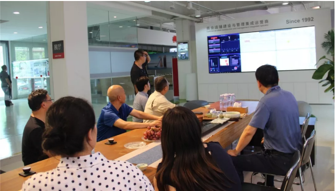 常宏董事總經(jīng)理王躍對中裝協(xié)秘書長一行的到來表示歡迎,并向大家介紹了常宏建筑裝飾工程有限公司的相關(guān)情況。大家一同觀看了常宏企業(yè)宣傳片,并針對常宏裝配式商業(yè)店裝、智慧展廳、智慧科技、BIM技術(shù)等進(jìn)行了深入的探討和交流。