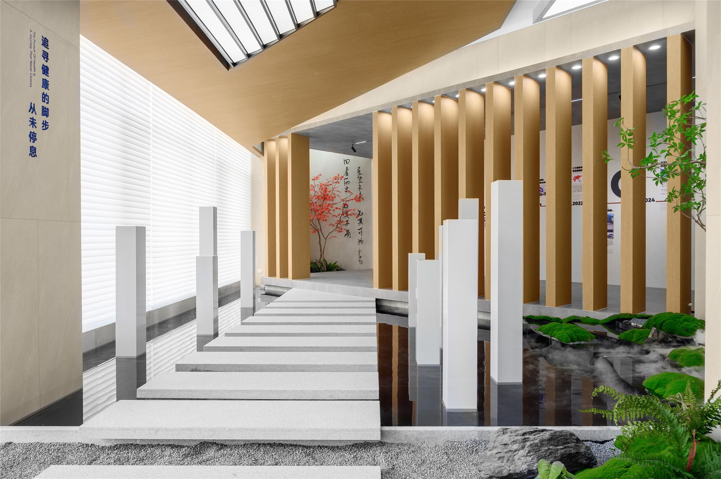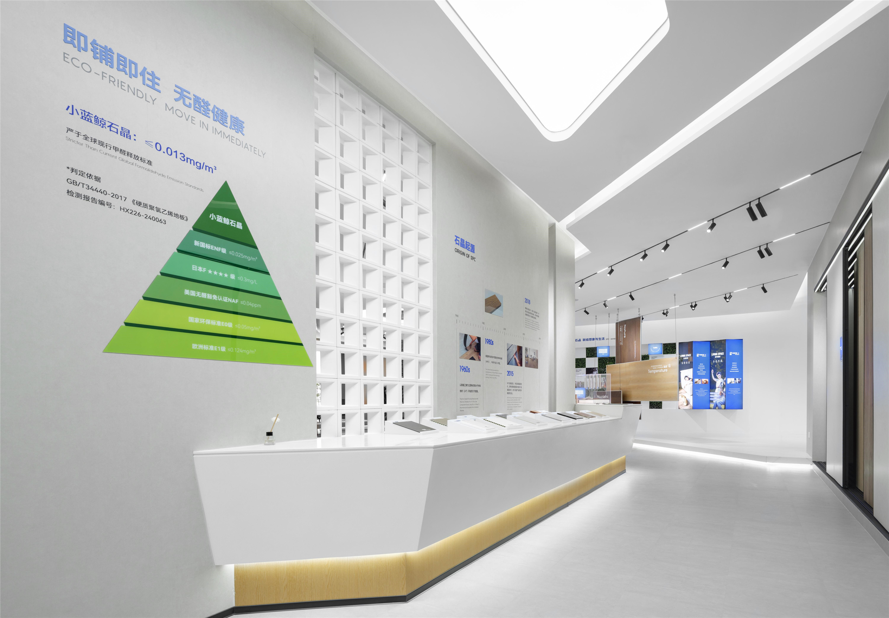 小藍(lán)鯨正定保稅區(qū)品牌形象展廳立足于企業(yè)歷史文化的戰(zhàn)略性總結(jié),以524平方米的一層空間為載體,融合品牌宣傳、產(chǎn)品展示、客戶接待等多重功能。作為連接辦公空間與生產(chǎn)園區(qū)的樞紐,展廳不僅承載著品牌形象的對外傳播,更通過設(shè)計的力量,將企業(yè)文化與創(chuàng)新精神具象化。